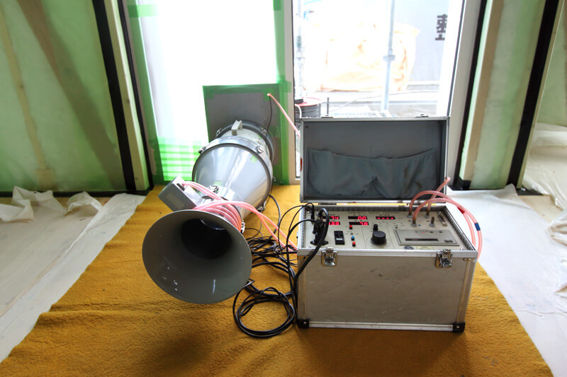 今回住宅の気密処理が出来たタイミングで気密測定を業者さんにお願いしました。