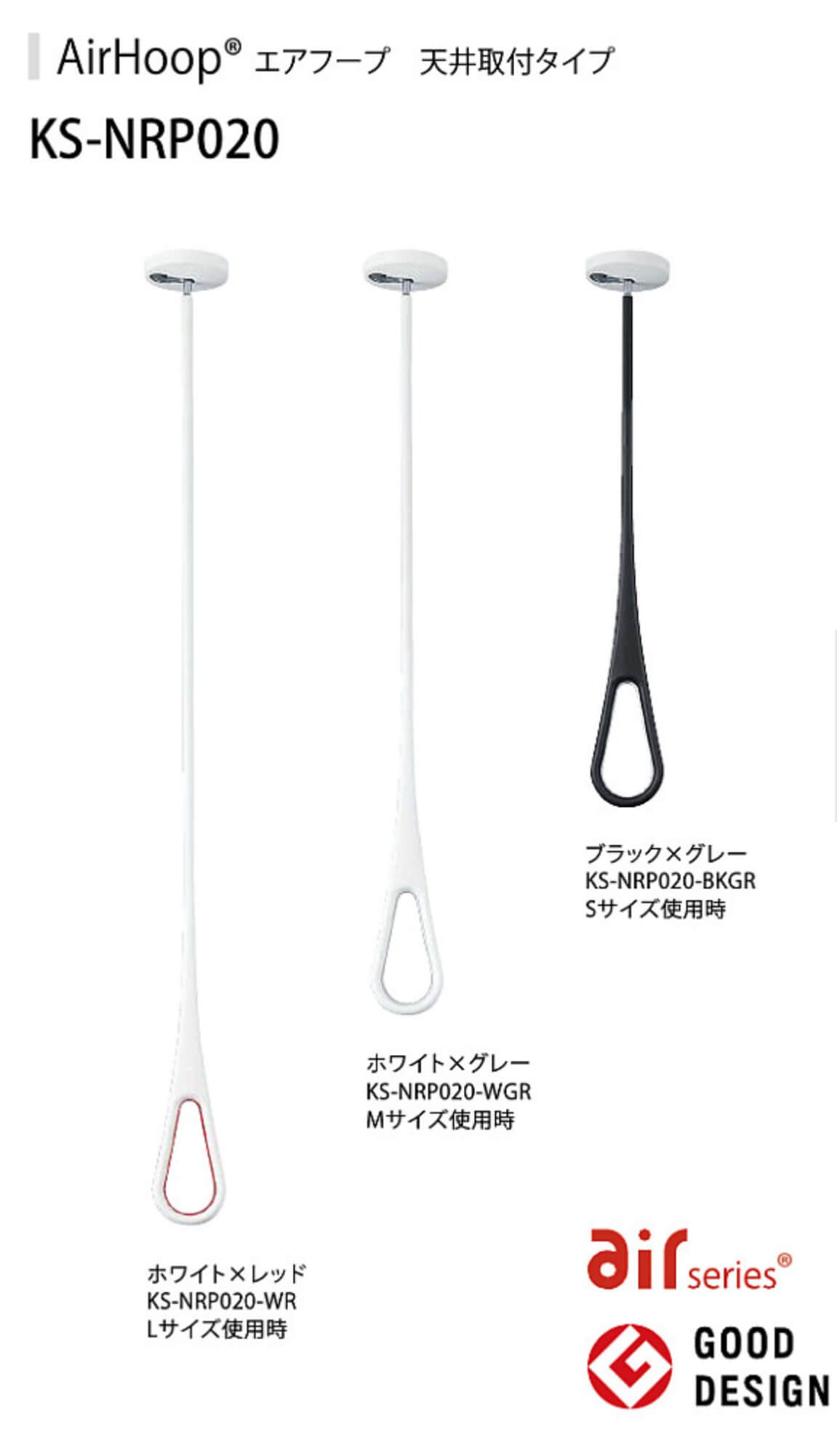 ㈱ナスタさんでだしている「エアフープ」という商品です。(天井付け商品)こちらグッドデザイン賞にも受賞しているもので、色は3色から選べるみたいです。「握りやすくユニークなしずく型のデザイン。洗濯物以外のものも掛ける事が可能」だそうです。デザイン性・利便性にも優れていますし、私が調べた中では現状ナンバーワンです。