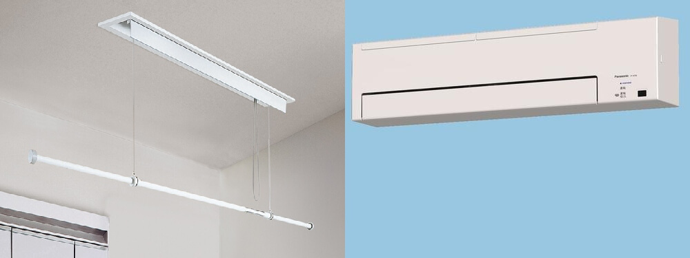 ただしこの場合は、お金もかかり建築完了後には施工が難しくなるので、安価に手っ取り早くやりたい場合は、雑貨物干し(組み立て式物干し、建物の施工不要)・家にあるサーキュレーター・扇風機を使うだけでも大分いいと思います。(出来れば建築中までにコンセントだけでも設けてもらえれば尚いいです。そのコンセントを使いサキュレーター・扇風機を使用することが出来ます。)