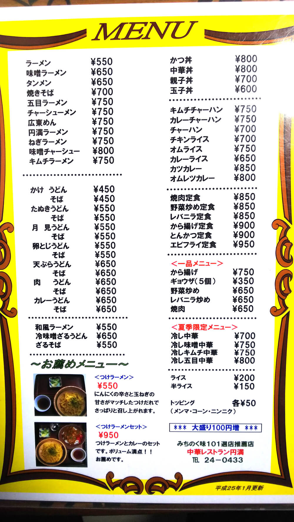 今回お世話になりました。「中華レストラン 円満」詳細です。