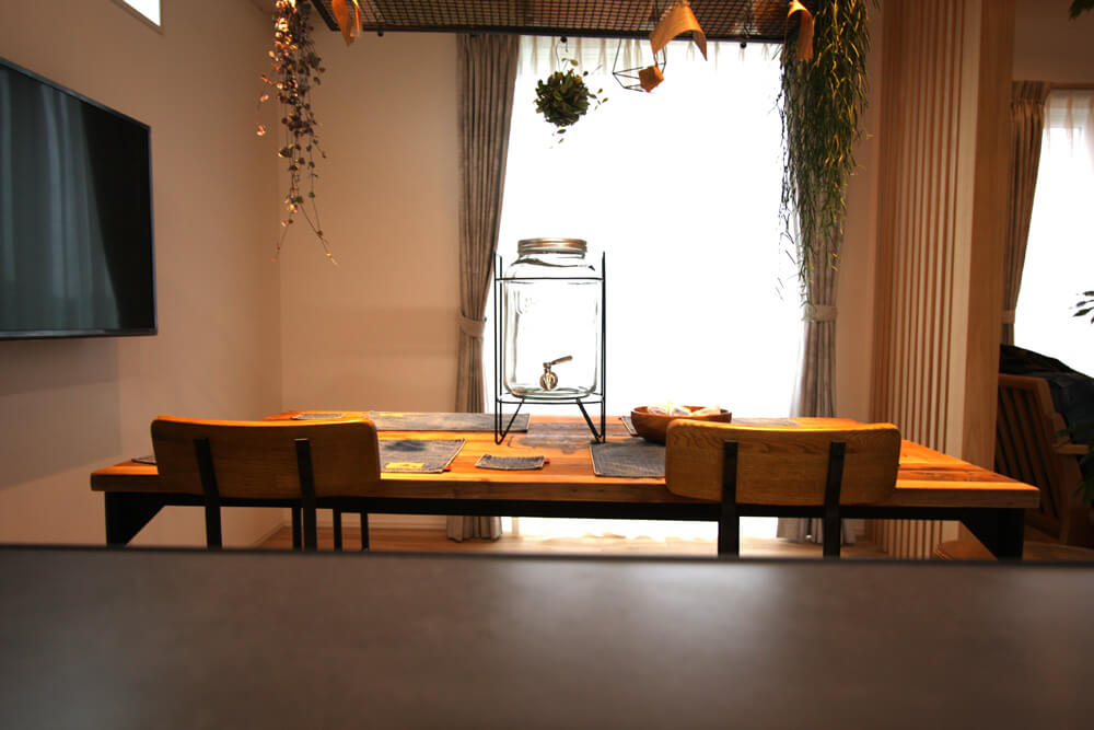家に家具は必要不可欠な物です。家具によって内装の雰囲気がさまがわりします。ですので、家具選びはとても重要なものになってきます。今回の弊社モデルハウスは、西海岸風(カリフォルニアスタイル)の住宅がイメージですので「クラッシュ・ゲート」さんの家具を使わせていただきました。THE男前家具って感じがしますね!結構内装とマッチしており、落ち着きのある空間がそこにはあります。カフェスタイルといっても差し支えないでしょう。