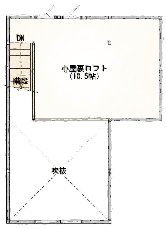 平屋の場合、結構、造りによっては小屋裏(屋根の中)のスペースが大きく取れます。そこを収納として活用すべきとオススメしております。何故かというと、平家で収納を増やすことは、建築面積が増えてコストも上がるためです。小屋裏を利用するため、基礎工事など必要なくなるからコストが抑える事ができるのです。