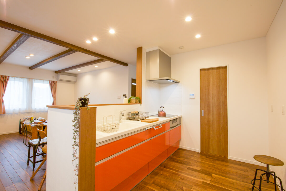 料理をつくった物を、ダイニングテーブルに運ぶのに便利なカウンター。当たり前の様に皆さんがつくるのですが、これも家を散らかしやすい原因となってしまっています。