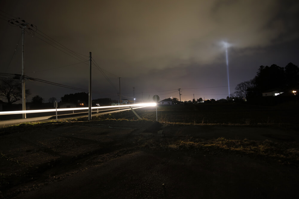 南相馬市で「南相馬光のモニュメント」が行われた。市内5カ所にサーチライトを設置。東日本大震災から7年がたち、「鎮魂と再生の願いを込めて」夜空に向かって光をともした。