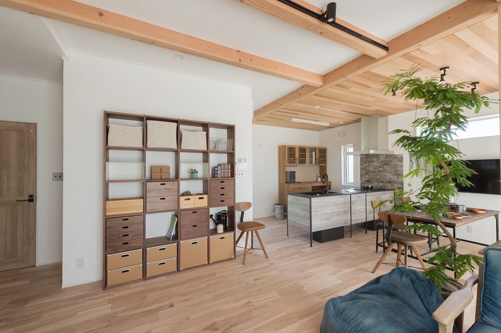 多くの人がそれを考える際に建築的なアプローチ、すなわち造り付けで収納の問題を解決しようとします。しかし、提案する側の私達からすると造り付けだけで収納の問題を解決するのは少し無理があると感じます。かかるコストの事もありますが、収納を多く設けることでの部屋の圧迫感や間取りの使いづらさが発生することなど、時には他のアプローチのほうが適している場合もあることが確かです。代表的な他のアプローチではやはり家具。家具はインテリアの側面もありますので、部屋のバランスや雰囲気、彩りを考えて選ぶと尚良いでしょう。